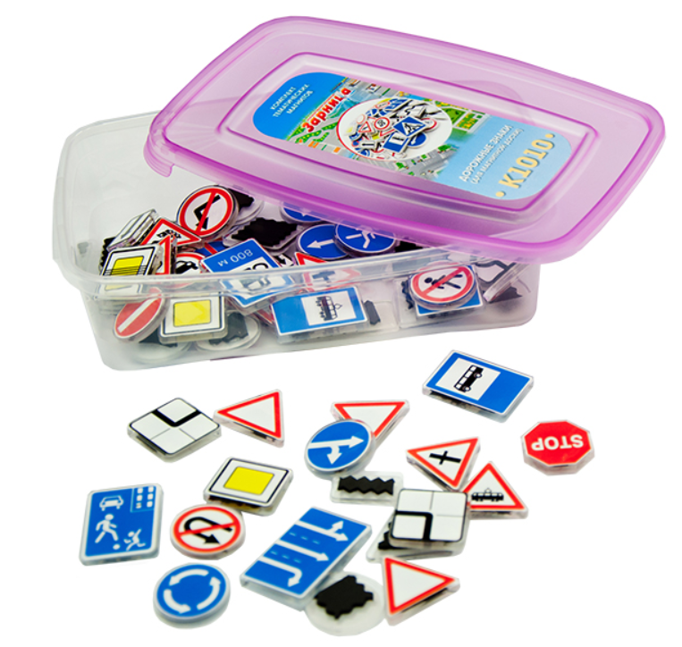 Комплект тематических магнитов предназначен для моделирования на магнитно-маркерных досках различных дорожных ситуаций с учетом значений дорожных знаков и наглядной демонстрации обучающимся правил дорожного движения.