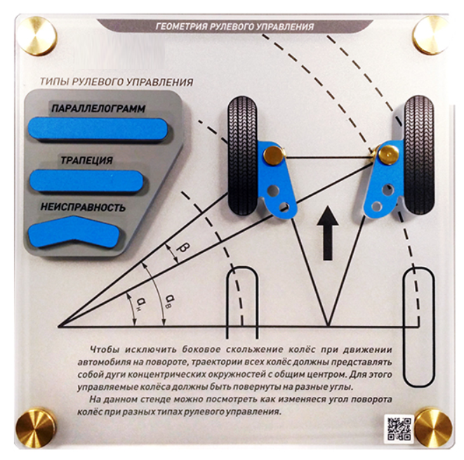 Демонстрационная модель настольного исполнения конструктивно представляет собой изделие в виде системы связанных подвижных элементов, имитирующих узлы автомобиля и их взаимодействие.